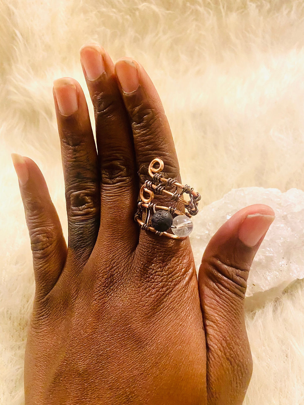 RINGS|Black Lava Rock and Clear Quartz Ring (Adjustable)